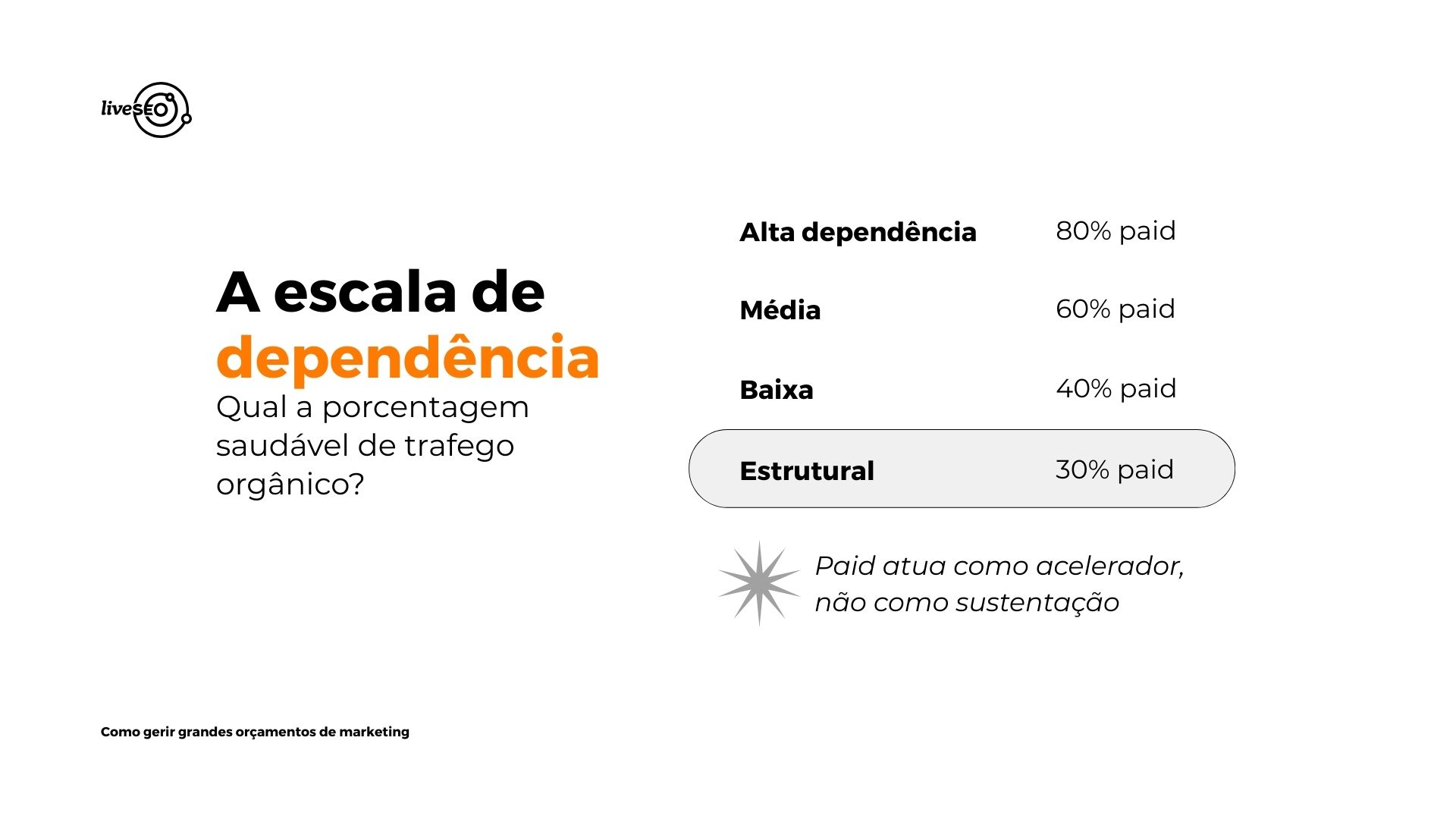 A principal armadilha nesse estágio é continuar operando como se ainda estivesse na validação, mantendo dependência total de tráfego pago. Isso cria um modelo frágil e exposto a oscilações de mídia. Na tração, a verba deve migrar gradualmente para uma estrutura híbrida: aquisição combinada com construção de ativo.